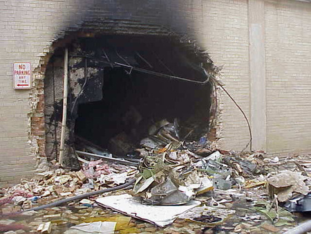 L’avion n’ayant pénétré que le premier anneau du bâtiment et s’étant écrasé au rez de chaussée, trouvez sur ces 2 images les débris du Boeing ?.