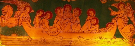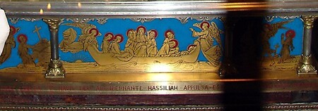 Détail du reliquaire de Sainte-Baume dans le Var, où l’on voit Marie-Madeleine transportant un corps entouré de bandelettes vers le port de Marseille (Massalia) [2]