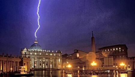 Quelques heures  (18h) après la démission de Benoit XVI, la foudre est tombé sur la basilique Saint Pierre.