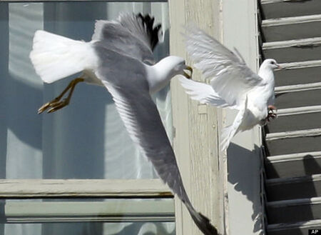 Autre étrangeté, le 27 janvier 2013 le pape a lancé devant 2000 jeunes 2 colombes. Les colombes ont été attaqués par des mouettes.