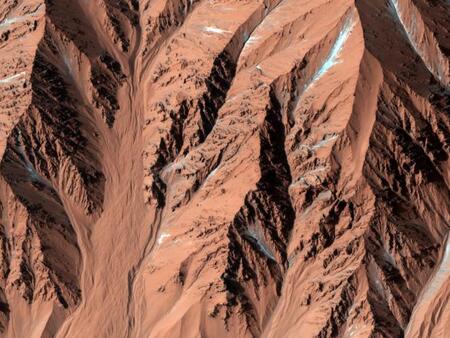 Les ravines observées à la surface de Mars peuvent être d’origine géologique ou dues à un écoulement d’eau. La manière dont l’écoulement serpente et les sédiments détectés indiquent qu’il y a bien eu de l’eau à la surface de Mars.