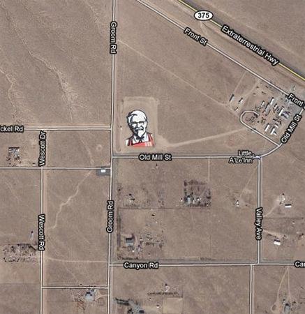 Commentaire : L’une des plus grosses pub payé par KFC pour apparaitre sur google map. C’est une vrai pub, pas un objet virtuel.